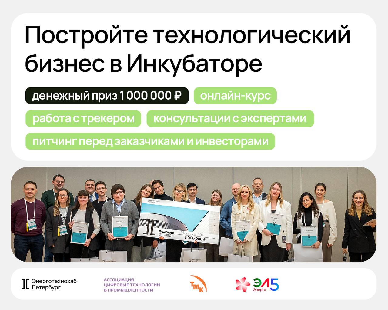 «Энерготехнохаб Петербург» открывает приём заявок в весенний сезон Инкубатора – программу по созданию стартапов в энергетике.